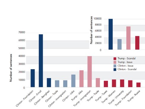 It shows the number of sentences in the US mass market media on different issues (source) during the 2016 election period. This is not just Fox News, but also reflects an odd obsession by publications like the New York Times or Washington Post about Clinton’s emails. (Some of the current administration also use their private email to conduct official business and it is hardly mentioned.)